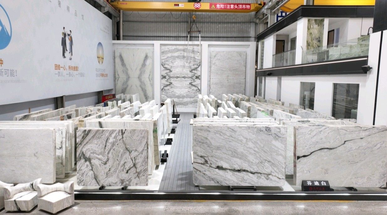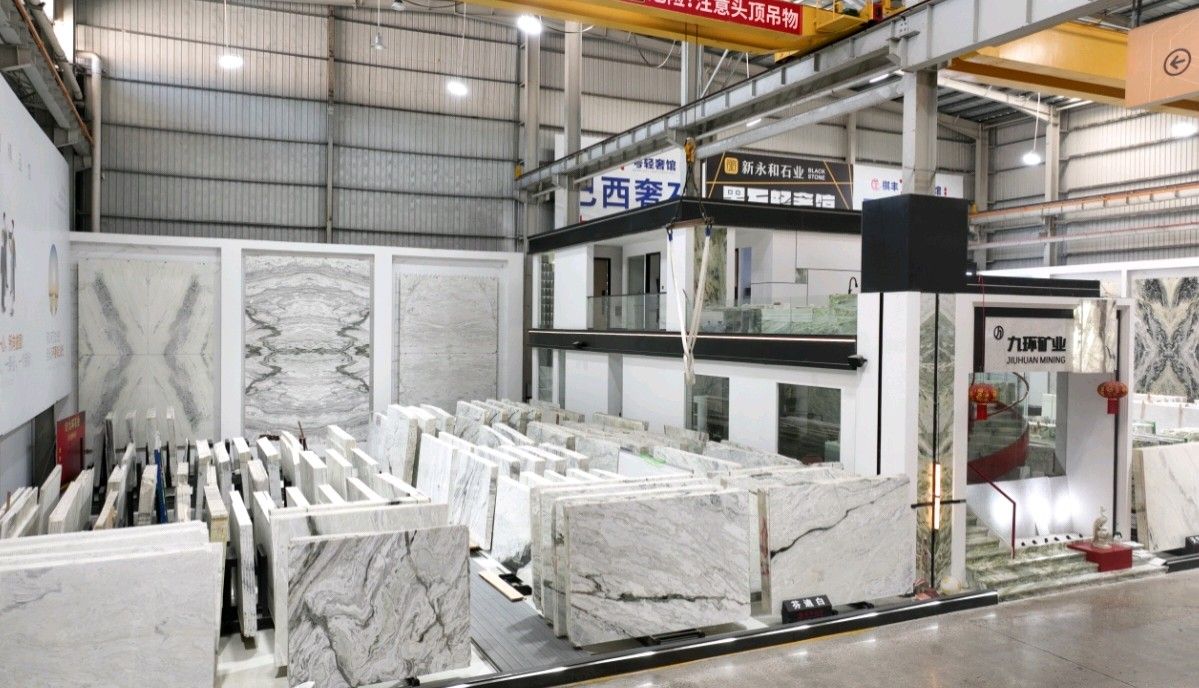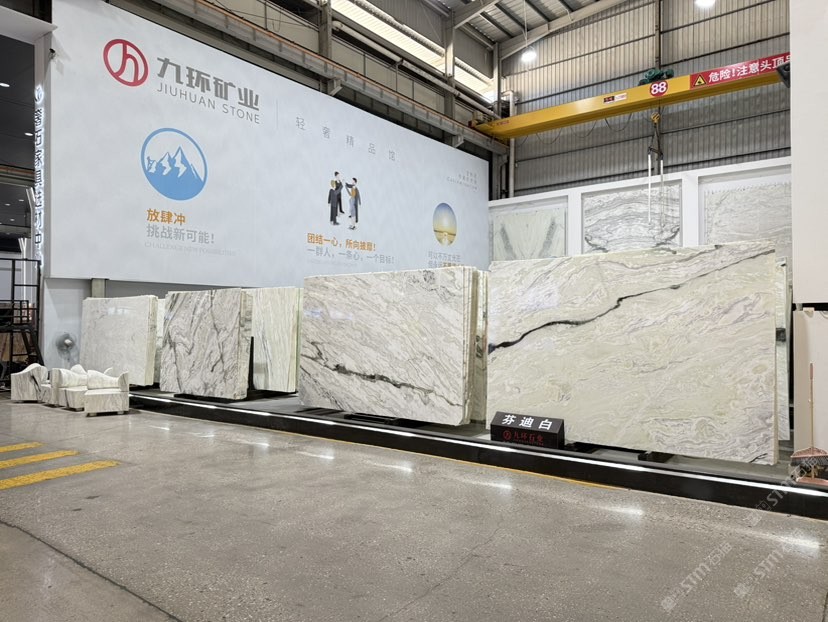 公司創(chuàng)建初期駐點(diǎn)于東升大板市場(chǎng),隨著市場(chǎng)需求,不斷進(jìn)行戰(zhàn)略布局,2016年駐點(diǎn)高時(shí)大板市場(chǎng),2017年駐點(diǎn)藝興大板市場(chǎng),同時(shí)期增加澳磊門店,2018年,九環(huán)增加遠(yuǎn)達(dá)專場(chǎng),擁有數(shù)百個(gè)架子位,憑借優(yōu)質(zhì)服務(wù)深受客戶認(rèn)可與信賴。2019年,九環(huán)于順盛增加加工點(diǎn),主要生產(chǎn)“水晶木紋”,年產(chǎn)量達(dá)15萬平方米。該年底順勢(shì)而上,增加均利廠、新寰宇廠及振南廠三個(gè)石材加工廠,并不斷拓寬市場(chǎng)品類,由原先單一的“水晶木紋”,又增拓“印度藍(lán)金沙”與“土耳其星月白”兩個(gè)大理石品種,年產(chǎn)量接近30萬平方米,公司經(jīng)營(yíng)得到進(jìn)一步優(yōu)化。2020年九環(huán)石業(yè)進(jìn)軍南翼點(diǎn),新增“卡索灰”及“古堡藍(lán)”兩個(gè)大理石品種,擁有自己的大型礦山開采權(quán),自主開采銷售,產(chǎn)品種類大幅度增加,業(yè)務(wù)領(lǐng)域進(jìn)一步拓展。2021年至今,九環(huán)石業(yè)新增澳盛點(diǎn),新增品種“卡地亞灰”包礦。至此,九環(huán)石業(yè)在“世界石都”水頭戰(zhàn)略版圖囊括了澳盛、新寰宇、東升、遠(yuǎn)達(dá)等駐點(diǎn),具備良好的區(qū)位優(yōu)勢(shì),發(fā)揮著重要的協(xié)同效應(yīng)。\