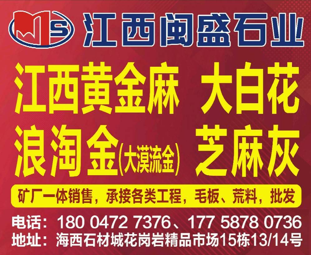 江西閩盛石業(yè) 聯系人:呂    177****0736 查看 177****0736 查看 主營范圍: 荒料、花崗巖加工、礦山、 企業(yè)地址:福建泉州海西石材城花崗巖區(qū)15棟14/13號