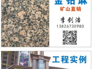 金輝石業(yè)集團有限公司主營產(chǎn)品:巴金鉆1,寶金石1,承德綠1,皇室啡2,巴金鉆,承德綠小花,國產(chǎn)皇室啡,藍豹,藍豹2,新福鼎黑(火燒面),承德綠2,黃金鉆5,黃金鉆11,黃金鉆6,黃金鉆10,黃金鉆(荔枝面),承德綠中花,皇室啡(火燒面),皇室啡(荔枝面),黃金鉆(火燒面),福鼎黑(噴砂面),福鼎黑(新礦),巴蘭珠,皇室啡3,皇室啡6,黃金鉆,黃金鉆1,黃金鉆0,黃金鉆3,寶金石,寶金石(光面),承德綠,承德綠3,承德綠大花,承德綠4,皇室啡,皇室啡5,皇室啡4,小藍豹,大藍豹,藍豹1,福鼎黑,福鼎黑(火燒面),皇室啡珠,皇室啡1,黃金鉆(國產(chǎn)),黃金鉆(光面),黃金鉆4,黃金鉆7,黃金鉆3#,黃金鉆(新礦1),湖北黃金鉆,黃金鉆8,沙漠棕(寶金石),豹皮花,藍眼睛,藍眼睛(伊朗),香檳鉆2,新藍眼睛(皇家礦)企業(yè)地址:河北承德甲山鎮(zhèn)富臺子村承德縣金輝石材有限公司